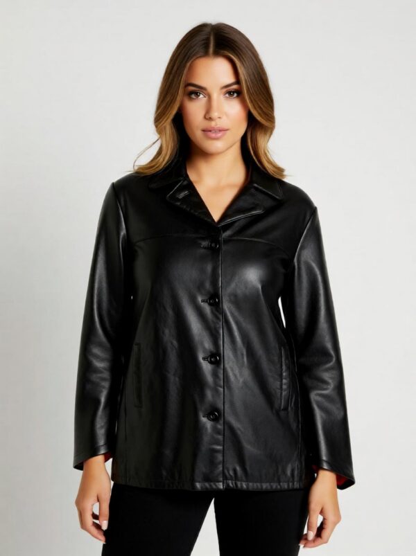 Elegantne keskpikk nahkjakk klassikalise lõikega.